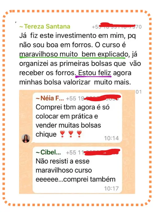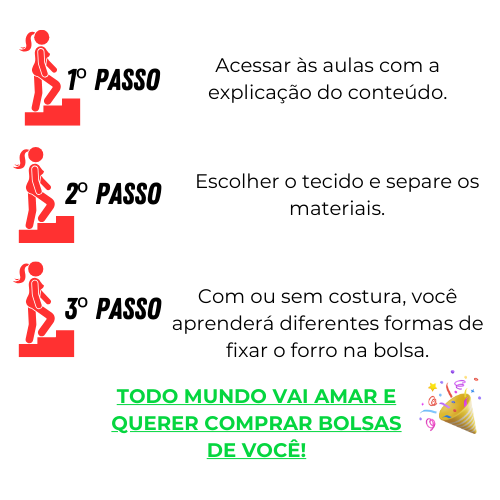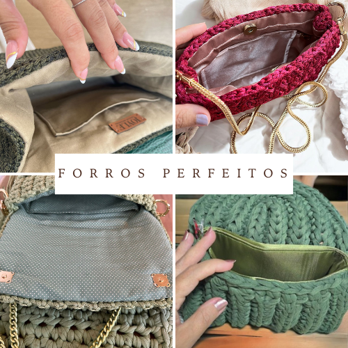 Com o Curso de Forros, você pode forrar suas bolsas e deixá-las mais estruturadas, sua bolsa ficará mais bonita e suas clientes vão amar, pode até virar uma RENDA EXTRA para você! 😍